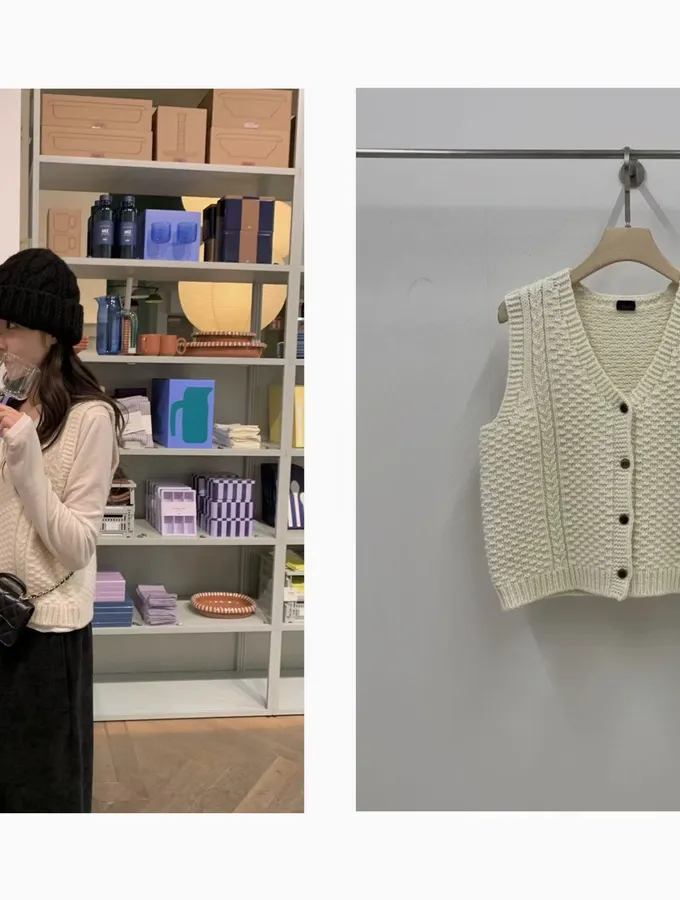 麻花背心 短版剪裁剛剛好,搭配襯衫或針織都好看,wool 100% 胸圍100cm 全長50cm 購買須知( 訂購前點入購買須知 )韓國訂購約15~25天不接急單,官網訂購付款完成,訂單成立,不接受退換貨服務,韓國代購,訂製被歸類於法規(通訊交易解除權合理例外情事試用準則)。售後服務( 訂購前點入售後服務 )訂購時確認以上注意事項,下單訂購代表同意,在下單前有問題,歡迎詢問我們再訂購唷。希望彼此都有個美好購物經驗Thank you💌