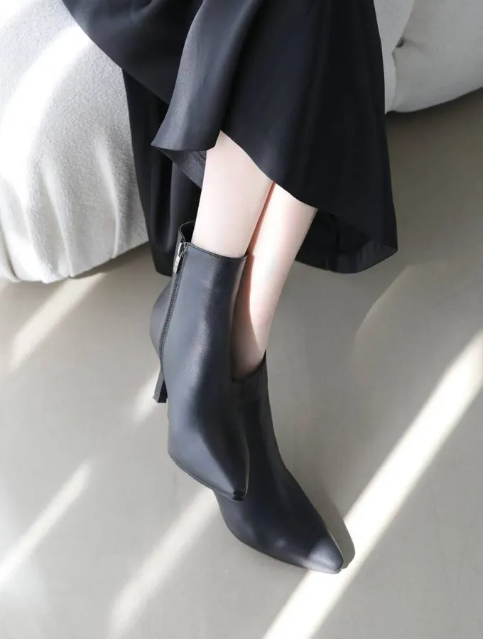 羊皮短靴 尖頭搭配細跟設計,穿上俐落有質感側面拉鍊好穿脫尺寸22.5~25 半號跳高度 7cm 購買須知( 訂購前點入購買須知 )韓國訂購約15~25天不接急單,官網訂購付款完成,訂單成立,不接受退換貨服務,韓國代購,訂製被歸類於法規(通訊交易解除權合理例外情事試用準則)。售後服務( 訂購前點入售後服務 )訂購時確認以上注意事項,下單訂購代表同意,在下單前有問題,歡迎詢問我們再訂購唷。希望彼此都有個美好購物經驗Thank you💌